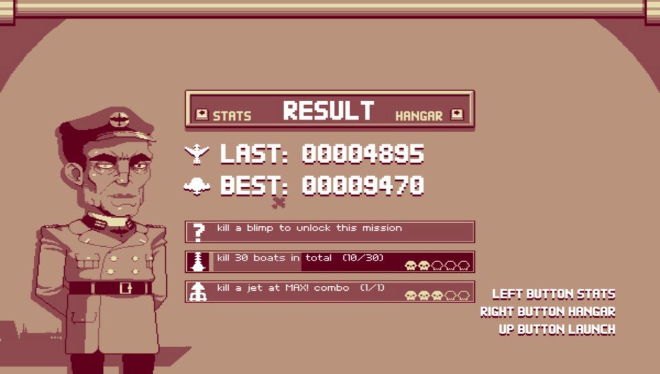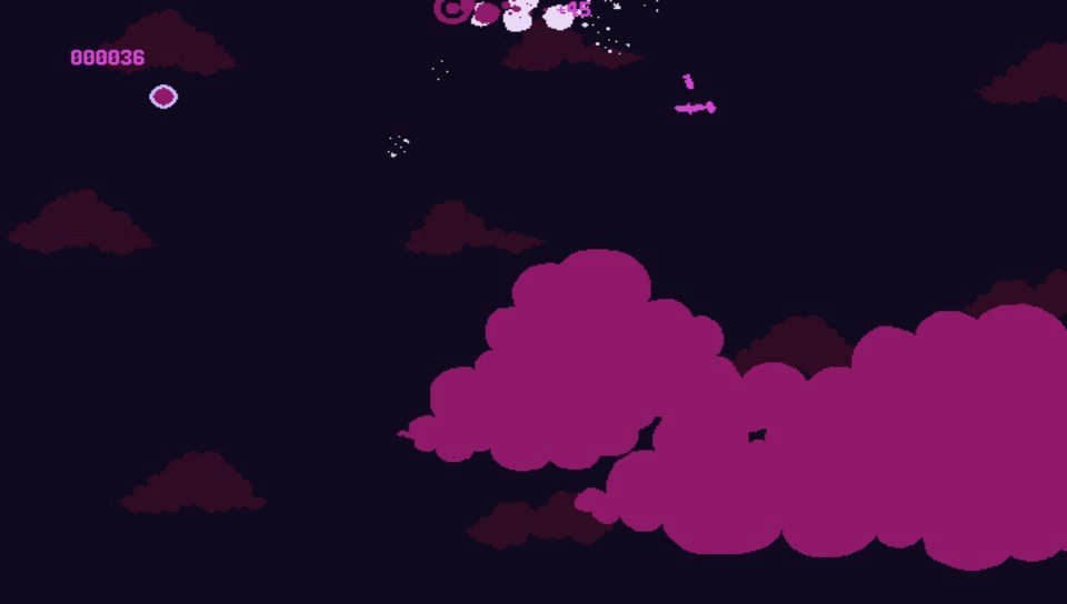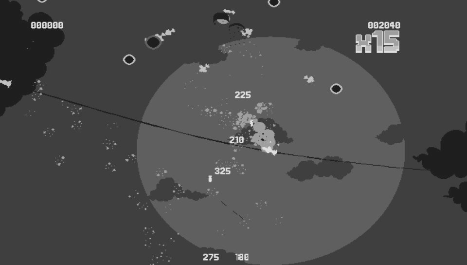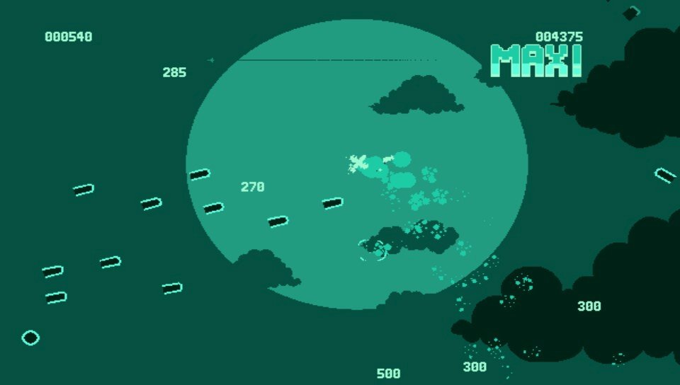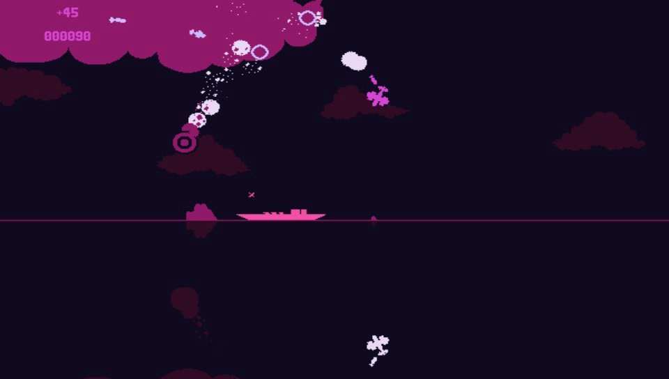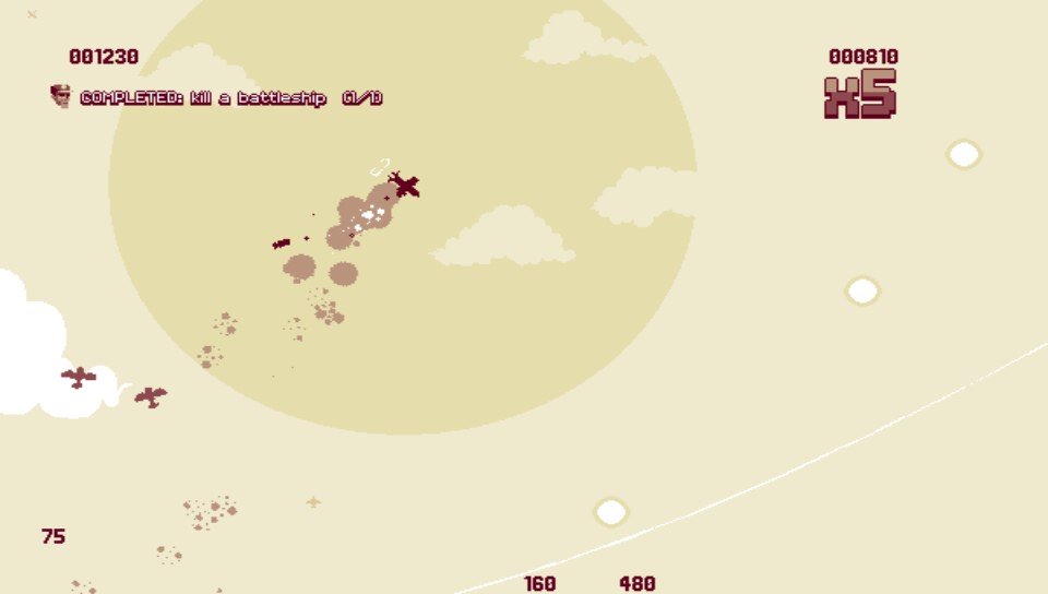 Wie für ein klassisches 2D-Shoot’em-Up üblich sammelt ihr auch fleißig Punkte und treibt euren Multiplikator in die Höhe. Habt ihr genug Punkte gesammelt, schreitet ihr ins nächste Level voran. Zu den Gegnertypen zählen neben den euch ähnlichen Kampfjets auch besonders schnelle Düsenjäger, Raketenboote, Schlachtschiffe, U-Boote und weitere Flugzeugtypen. Der Vergleich mit Hotline Miami kommt nicht von ungefähr. Neben dem Publisher teilen die beiden Indie-Games, dass ihr zu treibenden Beats reihenweise Gegner erledigt und dabei in einen schönen Flow kommt, der euch zu einer unaufhaltsamen Kraft macht.