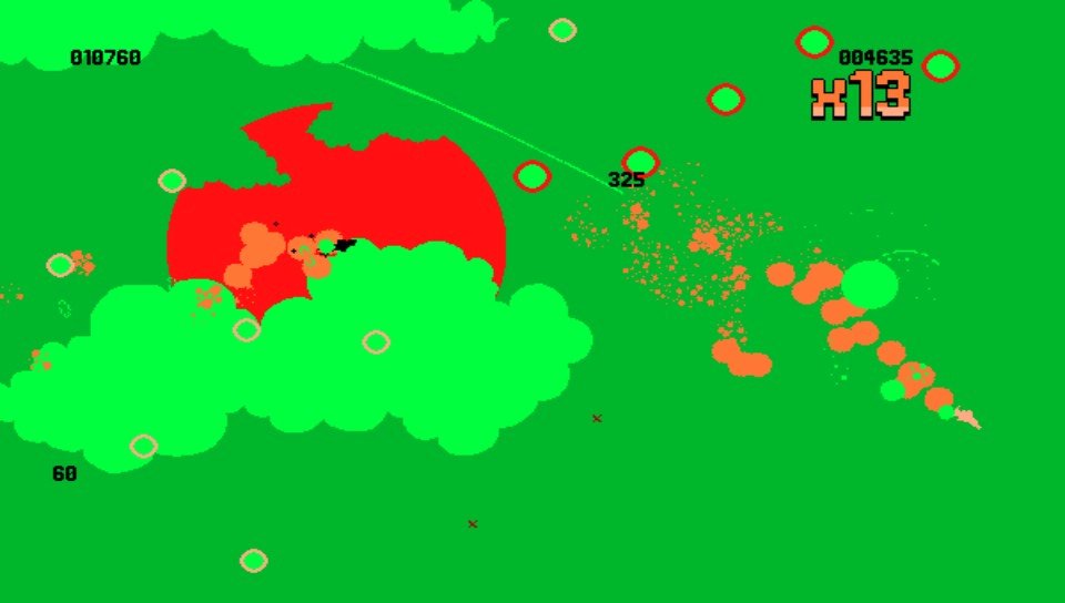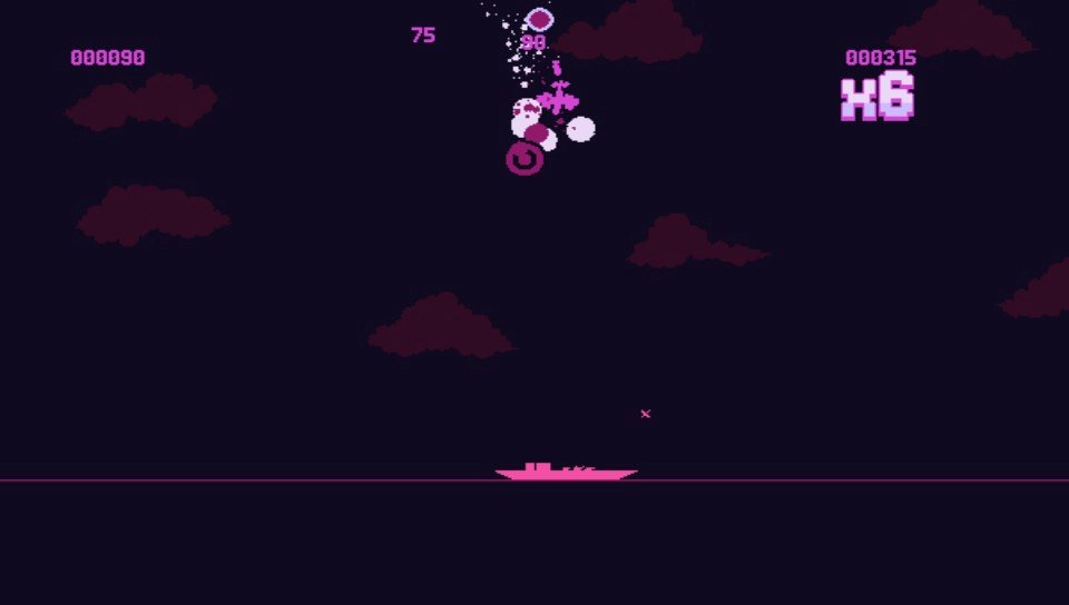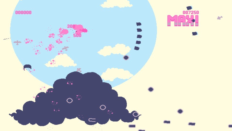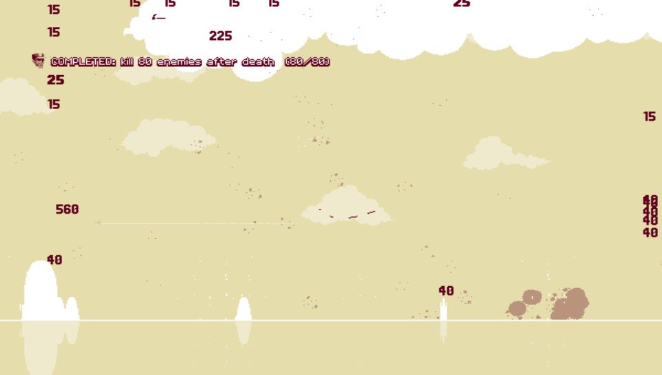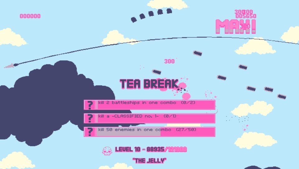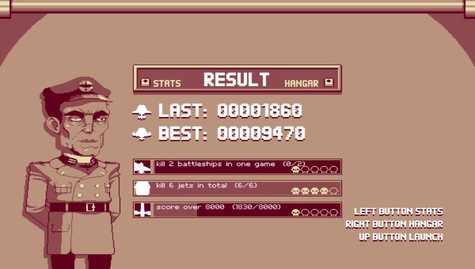 Wie für ein klassisches 2D-Shoot’em-Up üblich sammelt ihr auch fleißig Punkte und treibt euren Multiplikator in die Höhe. Habt ihr genug Punkte gesammelt, schreitet ihr ins nächste Level voran. Zu den Gegnertypen zählen neben den euch ähnlichen Kampfjets auch besonders schnelle Düsenjäger, Raketenboote, Schlachtschiffe, U-Boote und weitere Flugzeugtypen. Der Vergleich mit Hotline Miami kommt nicht von ungefähr. Neben dem Publisher teilen die beiden Indie-Games, dass ihr zu treibenden Beats reihenweise Gegner erledigt und dabei in einen schönen Flow kommt, der euch zu einer unaufhaltsamen Kraft macht.
