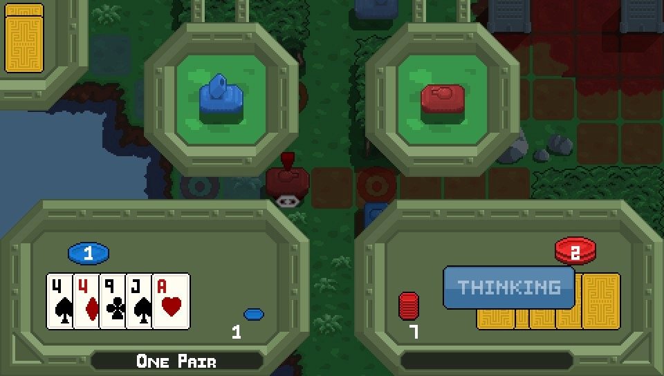 Habt ihr einen Gegner in Schusslinie, wechselt das Spiel in den Kampfmodus. Und hier werden nicht einfach Werte gegeneinander aufgerechnet, nein ihr spiel tatsächlich Poker gegen den anderen General. Small Blind, Big Blind, Kartenwechsel, mitgehen, Einsatz erhöhen oder die Karten niederlegen – Poker eben. Je nachdem, wer die siegreiche Hand inne hat, gewinnt das Scharmützel.
