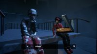 Die passend zu ihrer gleichfarbigen Vespa in lila gekleidete Protagonistin B versucht in einem Mehrfamilienhaus mit auffälliger Tapete eine Pizza bei Ben zuzustellen, der allerdings partout die Wohnung nicht verlassen will. Wir können uns entweder damit abfinden oder noch einmal nachfragen, ob er nicht aufmachen will. Diese rudimentären Entscheidungen gibt es immer wieder im Spiel und je nachdem was wir auswählen, erhalten wir vielleicht eine zusätzliche Dialogzeile, doch mehr Einfluss scheinen wir dadurch nicht auf den Fortlauf der Geschichte nehmen zu können. Nachdem wir die Pizza mit der Dreieckstaste vor der Wohnungstür abgelegt haben, werfen wir einen Blick auf die antike Uhr auf einem Regal vor dem Fenster – einer von zahlreichen Gegenständen, die scheinbar mit uns selbst in Verbindung zu stehen und uns an vergangene Tage erinnern lassen, sei es die Lieblingsschallplatte unserer Eltern oder ein Schnuller der Nichte. Wir verlassen den Komplex und realisieren, dass wir mitten im Nirgendwo sind. Über eine Telefonzelle erhalten wir von unserem Boss Earl den nächsten Auftrag. Das fühlt sich ein bisschen wie ein Spin-off des Pizza Dudes in Hotline Miami an. A Pizza Delivery führt uns zu fantasievoll gestalteten Schauplätze wie eine düstere Stadt, in der wir von Asche bedeckt werden, sobald wir uns auf eine Bank setzen, einen in einem malerischen Küstengebiet angelegten Friedhof und ein von Polarlichtern erhelltes Fabrikgelände.