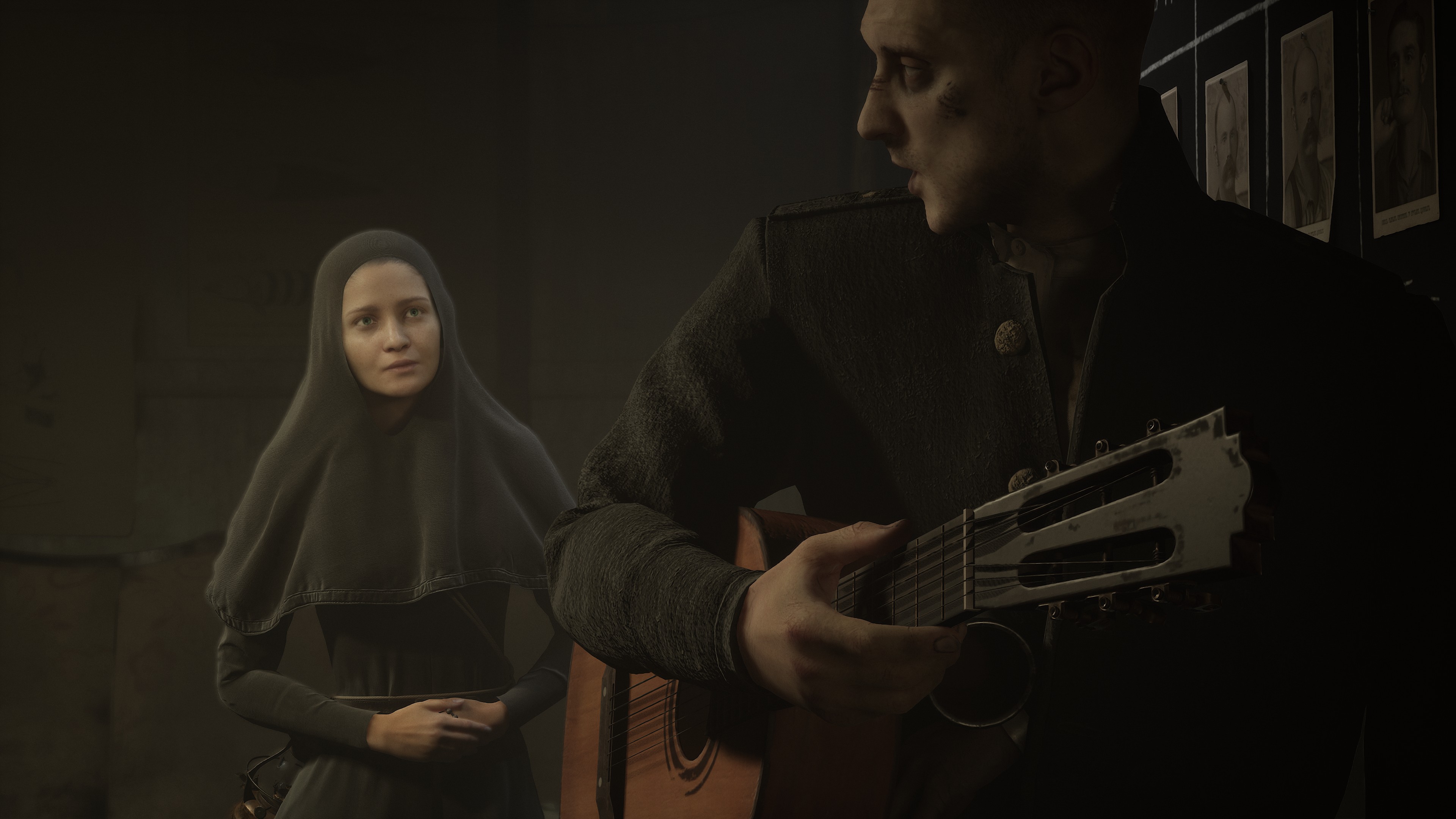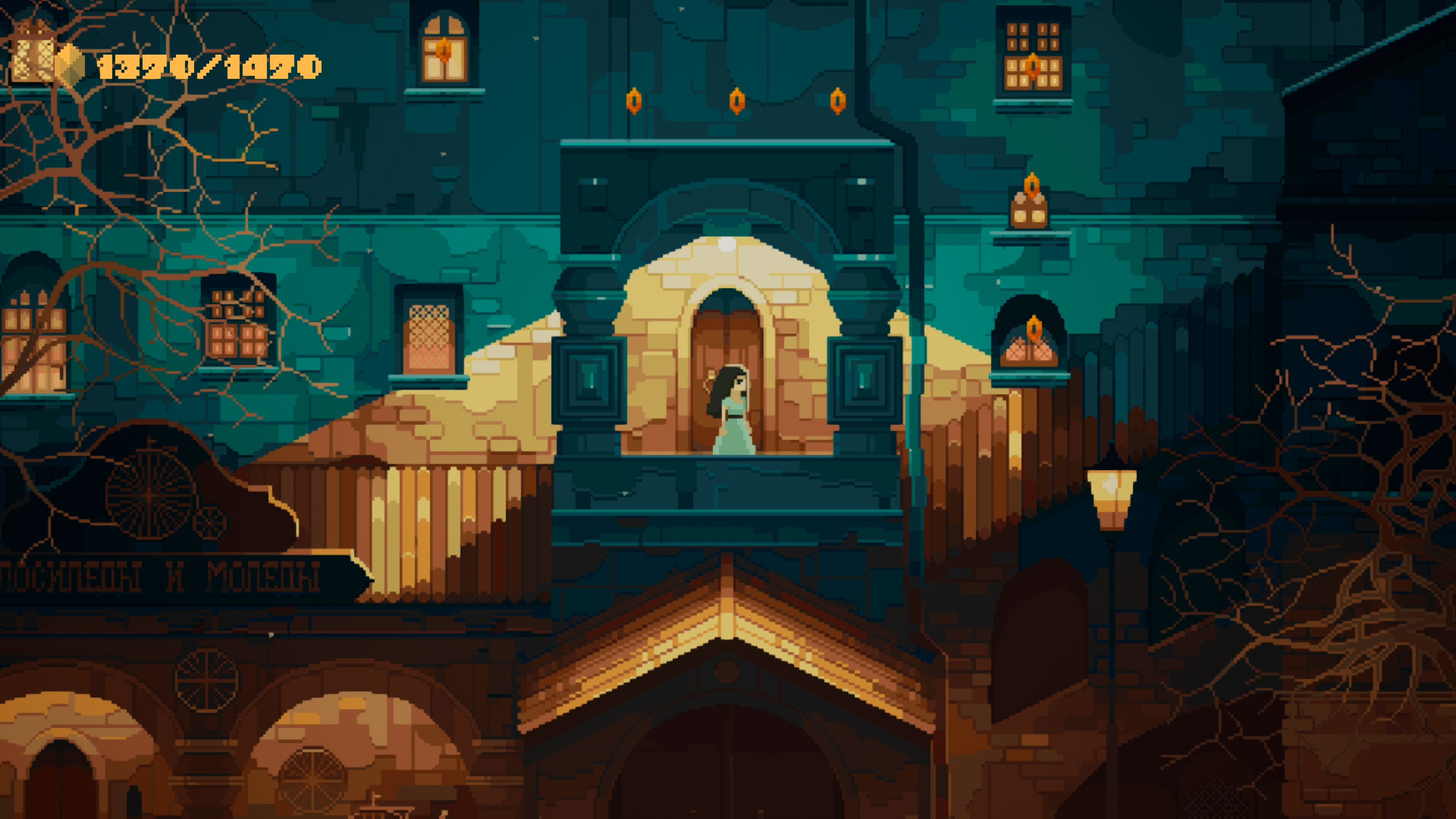 INDIKA bricht immer wieder mit dem meist in Grautönen gehaltenen realistischen Grafikstil, indem etwa die Pixel-Münzen aus den Pixel-Art-Rückblenden auch in der Spielwelt zu finden sind und wir damit in einem Fertigkeitenbaum uns dafür entscheiden, etwa unsere Reue oder Demut zu steigern, ohne dass dies irgendeinen Effekt auf den Spielverlauf zu haben scheint. Zur beeindruckenden Symbiose von Spielmechaniken und Präsentation trägt der großartige Soundtrack von Mike Sabadash bei, der wie das Spiel ganz unterschiedliche Stile vereint und mancher Sequenz das i-Tüpfelchen aufsetzt.