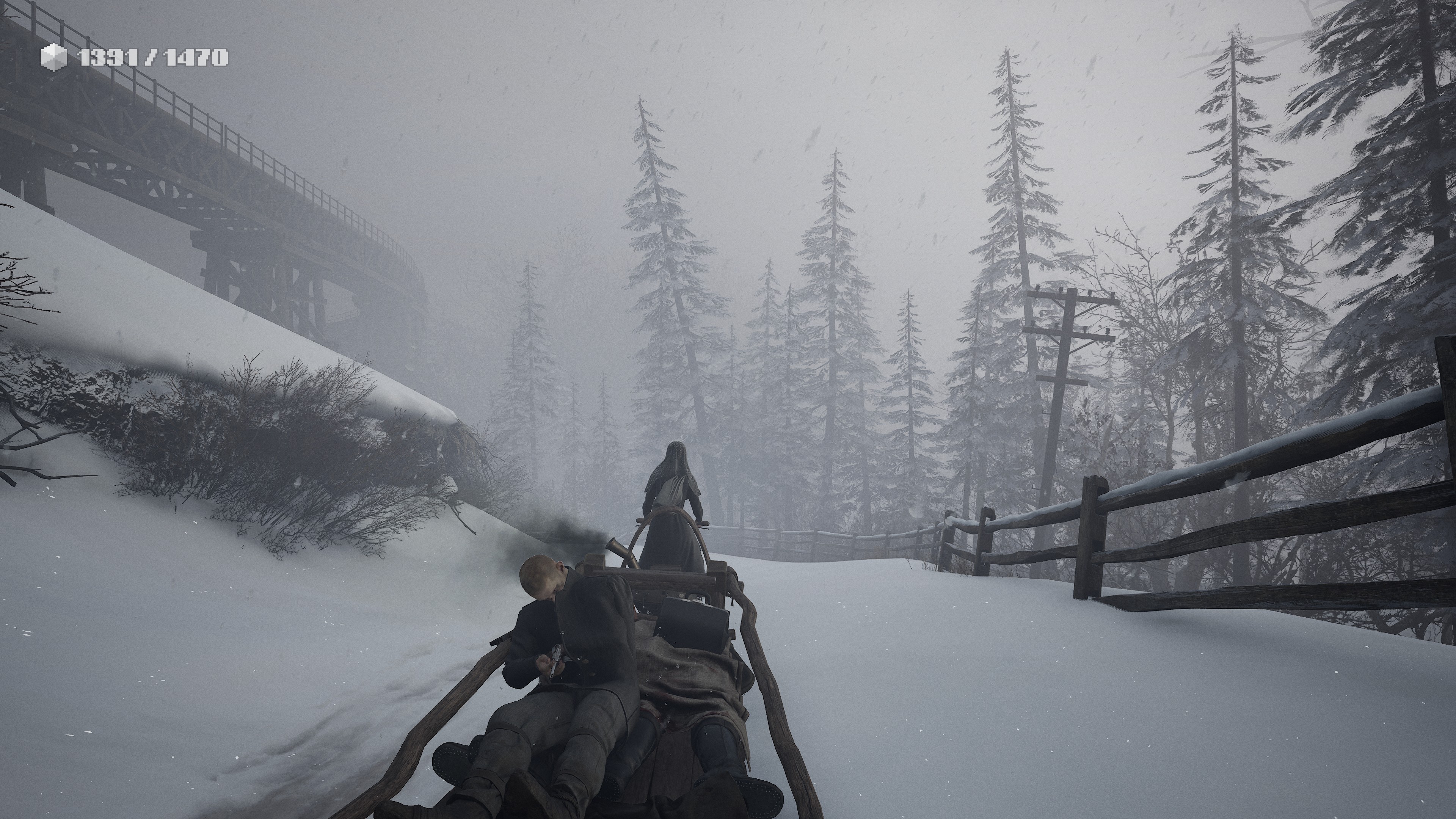 Bei der vormals so eindrucksvollen Präsentation muss man allerdings in der neuen Umsetzung für die Nintendo Switch einige Abstriche machen. Während Indika auf einem PC und der PS5 Pro durch riesige plastische Matschpfützen watet, tiefe Spuren im Schnee hinterlässt, sich ihre glänzende Robe im Wand wiegt und darauf sogar einzelne Schneeflocken landen, bleibt davon auf der Switch nicht viel übrig. Es gibt keine Spuren im Schnee, viele Objekte wie Pfützen, Indikas Robe und die im Original bereits unzureichend dargestellte Vegetation verlieren enorm an Details und auch an Schatten. Gerade die flache Beleuchtung und die pixelige Optik führt zu einem visuell enttäuschenden Erlebnis und das Spiel ist auf der Switch stellenweise so dunkel, dass die Navigation problematisch werden kann.