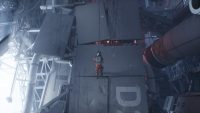 Mit unserem Pathfinder – eine Art Pip-Boy an Arianes Arm – finden wir einen Ausweg aus dem Ungetüm. Wir bekommen wirklich einen Eindruck von der Größe des Space-Shuttles. In Rutschpartien weichen wir herabfallenden Wrackteilen aus und mittels Enterhaken erklimmen wir steile Vorsprünge, während wir das Seil zum Schwingen zu neuen Plattformen nutzen. Das steuert sich alles recht eingängig und die einzelnen Bereiche des Shuttles um den Rover werden imposant in Szene gesetzt.