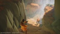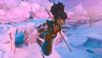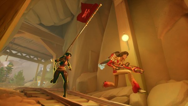 In seiner Jugend spielte Dan gerne im Scout Camp, Capture the Flag und eine weitere Inspirationsquelle war Valves Team Fortress 2 – ein kurzweiliger Mehrspielertitel mit ikonischen Charakteren, geringer Einstiegshürde und süchtig machendem Spielprinzip. In Last Flag finden wir uns in einer fiktiven Game Show in den 1970ern wieder. Lumberjack – ein Holzfäller inspiriert von Dans bestem Freund und Trainer -, Scout – ein Falkner, der sich kurzerhand an die kräftigen Beine seines treuen Begleiters hängt und der zur Würdigung der Mitwirkung von ukrainischen Entwicklerinnen und Entwicklern die Landesflagge trägt – und die anderen sieben Charaktere werden über Röhren direkt auf eines von zwei zur Veröffentlichung verfügbaren weitläufigen Karten transportiert. Weitere Level sollen im Übrigen nachgereicht werden und man arbeitet bereits an der Konzeption der vierten Map.