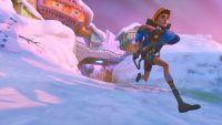 Um die Suche nach der gegnerischen Flagge zu beschleunigen, könnt ihr verschiedene Radartürme erobern. Diese durchsuchen unterschiedliche Quadranten der Karte und visualisieren für euch den besten Suchort auf der Minikarte. Je mehr Türme ihr erobert und je länger ihr sie haltet, desto schneller findet ihr die Flagge. Jeder Charakter verfügt über unterschiedliche Waffen und Spezialfähigkeiten. So geht der Lumberjack naturgemäß mit seiner Axt im Nahkampf zu Werke, Roadie kann mit einer Spezial-Granate seine Gegner zu einem bestimmten Punkt ziehen und sie dann mit einem Granatwerfer traktieren, Skyfire brutzelt alles in einem sehr begrenzten Bereich mit dem Flammenwerfer weg und Arsenal verwendet ein Plasma-Gewehr und kann Mini-Guns platzieren. Eine weitere Spezialfähigkeiten zwingt alle Feinde in einem bestimmten Radius zum Tanzen und immobilisiert sie so – herrlich absurd. Power-ups lassen euch wie in einem klassischen Shooter mehr Schaden auszuteilen und Sprung-Pads erlauben euch neue Areale zu erreichen. Durch die Weitläufigkeit der Karten und die begrenzte Spielerzahl spielt sich Last Flag weitaus weniger chaotisch als man annehmen könnte. Wege können verkürzt werden, indem man eroberte Radartürme als Spawnpunkte nutzt – zur Heilung dienen sie indessen auch. Die Rollenverteilung innerhalb eines Matches ändert sich dynamisch – schützt ihr lieber den Flaggenträger, erobert ihr Türme, damit das andere Team nicht eure findet oder killt ihr Cashbots um Geld zu sammeln?