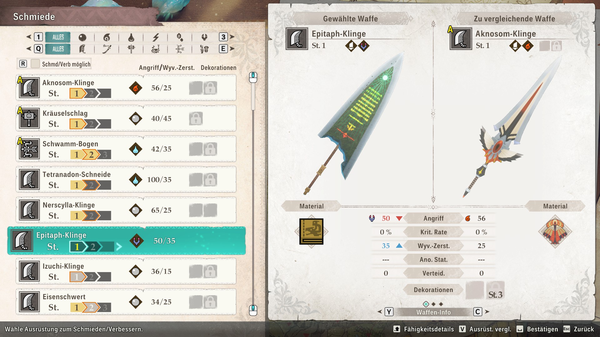 Nach den Kämpfen und der Sammelei könnt ihr bei Schmieden Waffen sowie Rüstungen schmieden und auch aufwerten und allerlei im Kampf hilfreiche Gegenstände anfertigen. Zu einem Punkt müssen wir aber noch kommen, der den Unterschied macht, ob man einen Hauptteil der Monster Hunter-Serie oder Monster Hunter Stories 3: Twisted Reflection spielt: die Eier. In Stories müssen wir ein Ökosystem aufbauen, indem wir Eier sammeln und die Monsties ausbrüten. Danach können wir entscheiden, ob wir die Fähigkeiten für die eigenen Monsties übernehmen oder nicht und ob wir sie anschließend freilassen. Je öfter wir das machen, desto höher wird unsere Wertung im Ökosystem. Wenn wir dann neue Eier sammeln, brüten wir damit noch bessere Monsties aus. Um der ganzen Sache die Krone aufzusetzen, können wir den Tag-/Nachtzyklus dahingehend nutzen, nachts besondere und stärkere Monsties zu ergattern.
