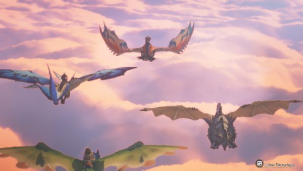 Während es in der Monster Hunter-Serie wie zuletzt in Wilds darum geht, Monster zu erjagen und die eigene Ausrüstung zu verbessern, ist dort die Story lediglich Beiwerk, um von einem Gebiet zum nächsten zu kommen. Dies ist in MH Stories 3 anders. Hier wird sich für die Geschichte mehr Zeit genommen und auch die Charaktere sind mehr ausgearbeitet. So erfährt man in dem Spielverlauf Hintergründe zu den Figuren und einige der Figuren sind miteinander verknüpft, was eine gewisse Dramatik erzeugt. Auch jeder einzelne Ort in der Spielwelt erzählt seine eigene Geschichte und über die darin lebenden Völker können wir einiges erfahren. Am Anfang werden wir sachte in die Welt eingeführt und erleben, wie eine Expedition ein kristallisiertes Ei findet und dieses dann auch mitnimmt. Später erfahren wir, dass aus diesem zwei Rathalos schlüpfen – ein schlechtes Omen und daher muss eines getötet werden. Während der Tötungszeremonie geschieht aber etwas, worauf wir aus Spoilergründen nicht eingehen, da ihr das besser selbst im Spiel herausfindet. Die Kristallisation nimmt immer weiter ihren Lauf, sodass es schließlich zu einer Konfliktsituation zwischen den Königreichen Azuria und Vermeil kommt. Zuerst wird noch ein Verhandlungsgespräch aufgenommen, doch dieses verläuft nicht so wie gehofft und die Situation spitzt sich weiter zu bis zur ersten Eskalation, die mit Waffen ausgetragen wird. In dieser Ausgangslage gehen die Helden auf Reise, um ihre Abenteuer zu erleben. Im weiterem Verlauf begleiten wir die Entwicklung der verschiedenen Charaktere und erleben, wie sich deren Beziehungen untereinander entwickeln. Die Story ist gut geschrieben und motiviert die Spielenden dazu, bis zum Ende am Ball zu bleiben. Ein Ende im klassischen Sinne gibt es nicht, denn nach den finalen Kampf und dem emotionalen Höhepunkt der Geschichte geht es in einer Aufbruchstimmung weiter im Spiel. Das Erbe liegt nun bei den Reitern, die zu Kämpfen gegen mächtige Gegner herausgefordert werden, was die Geschichte abgerundet.